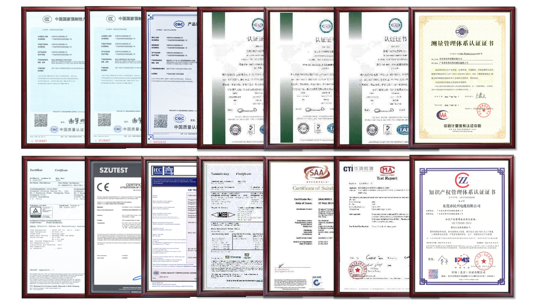 尊龙坚持自主研发,重视质量管理和售后服务体系建设,经过多年的努力和不断改进,建立了一套科学规范、资质认证齐全的质量管控体系和售后服务系统,为打造高品质线缆奠定坚实基础。拥有:ISO质量管理体系认证、国家CCC认证、中国质量认证中心CQC认证、国际IEC认证、欧盟CE认证、澳大利亚SAA认证、德国莱茵TUV认证、欧盟RoHS环保检测认证等;建立严格完善的来料检测系统,严苛甄选原材料,从源头上保证产品的高端品质;启用QMS质量管理系统、全自动化机械手臂等,实现智能化、精细化、标准化生产,提高生产制造质量水平。